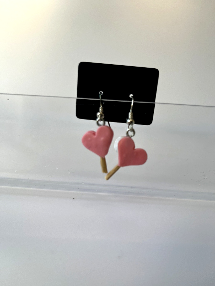 Urocze kolczyki w kształcie lizaków w kształcie serc, idealne dla osób lubiących słodkie akcenty.