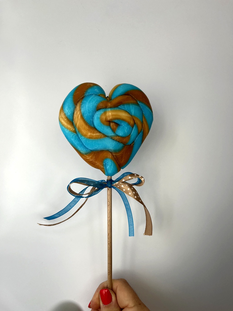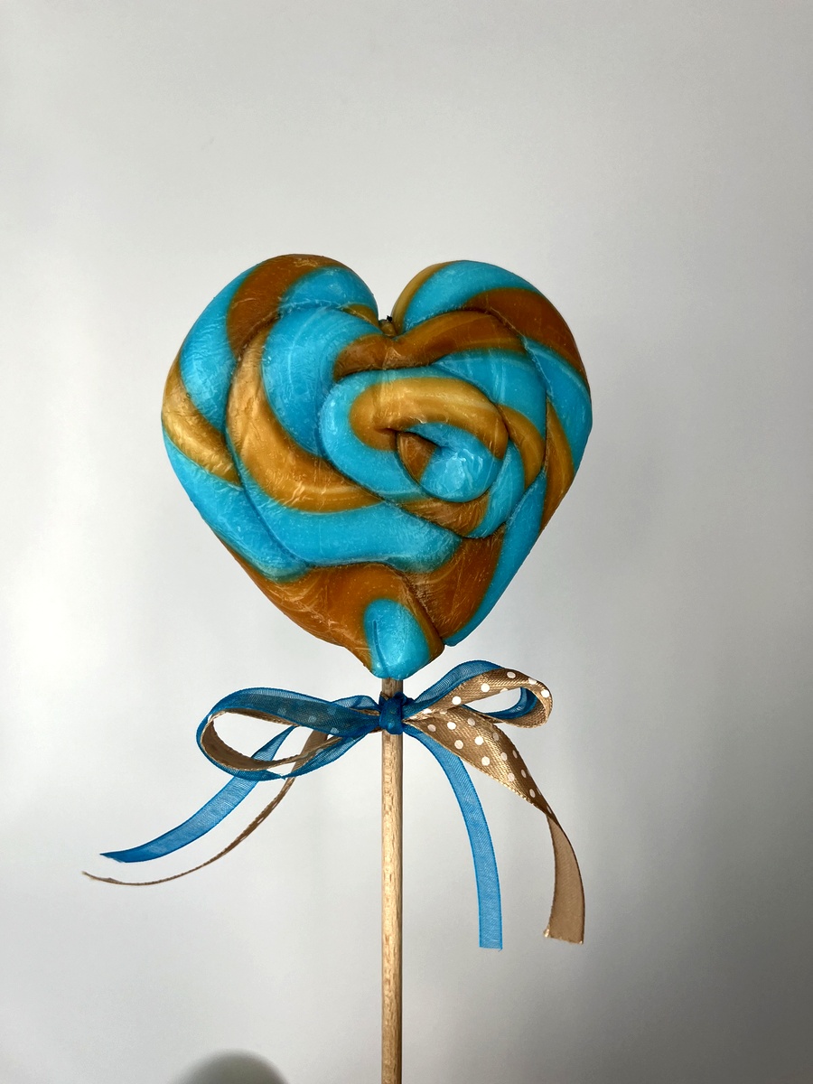 Lizak w kształcie serca, z dwukolorowym spiralnym wzorem. Ozdobiony jest wstążką zawiązaną u nasady. Każdy produkt to unikalne dzieło sztuki cukierniczej, tworzone tradycyjnymi metodami rzemieślniczymi.